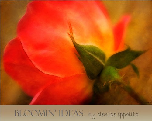“From its beautiful cover image (KnockOut Rose with texture overlay and Fractalius) to the color wheel on page 102, Denise Ippolito’s latest offering is filled with her evocative flower images. Her work features uncommon perspectives, simple but powerful image designs, and soft colors–she is not at all afraid of being feminine. Denise uses a multitude of in-camera and post-processing techniques (including a variety of filters and effects) to turn the ordinary into the extraordinary and to turn almost any image into a piece of fine art. To do this she employs her incredible vision, her unbridled creativity, and her Photoshop skills. In Bloomin’ Ideas she will–in her informal, easy to read and easy to follow style–teach you to expand your creativity and greatly improve your flower photography skills. Whether behind the lens or sitting in front of a computer Denise Ippolito is the most consistently creative person I know.”